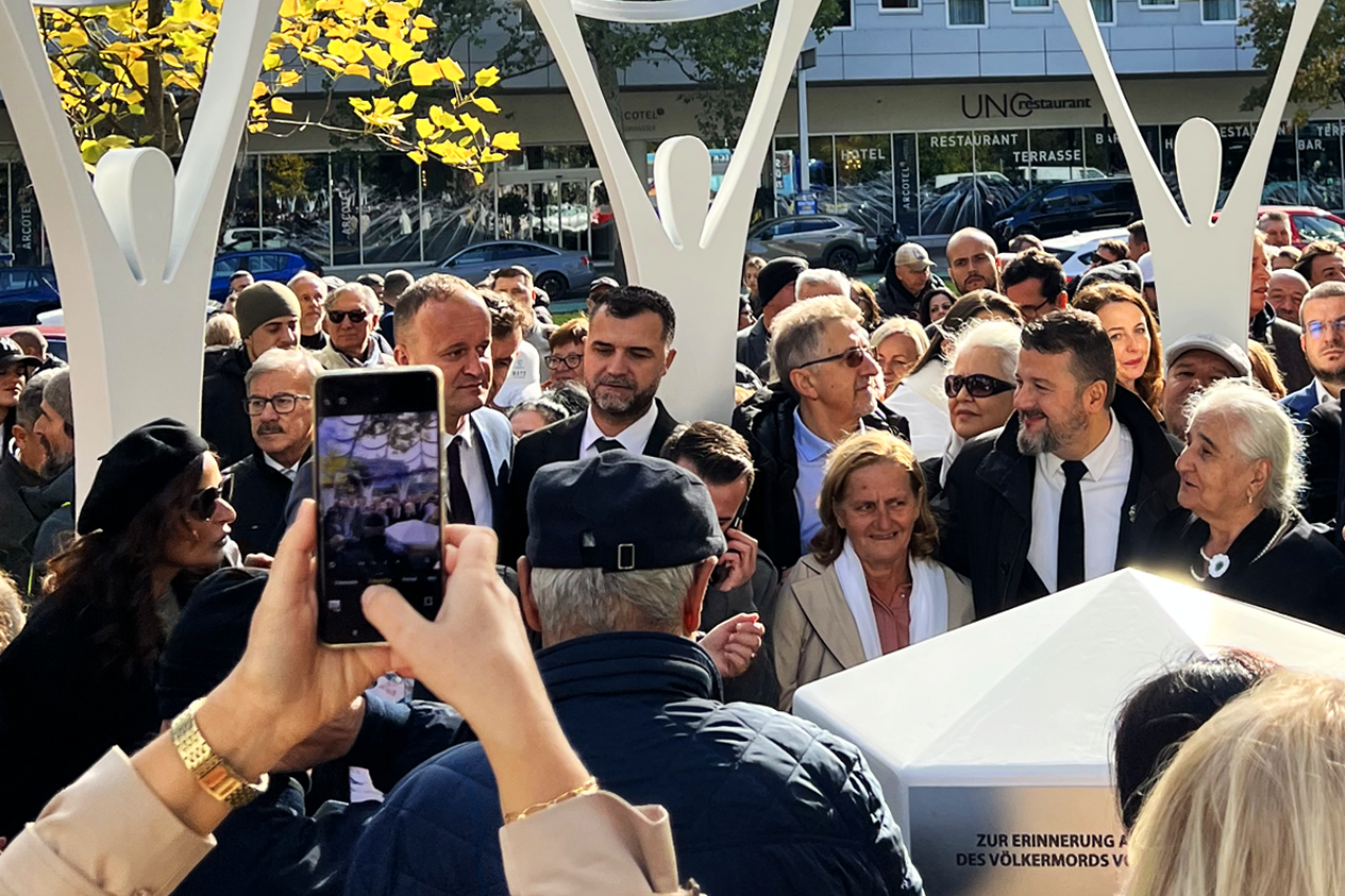 Zemljište na kojem se nalazi spomenik u vlasništvu je Grada Beča, ali se nalazi neposredno uz zgradu Ujedinjenih nacija. Na svečanosti su prisustvovali i gradski vijećnici Omar Al-Rawi i Aslihan Bozatemur. Bozatemur je u 21 sjednici Gradskog vijeća Beča zagovarala izgradnju ovog spomenika – inicijativu koju je podržao i gradonačelnik Beča, Michael Ludwig. Grad Beč predstavljala je i članica vlade za kulturu, Veronika Kaup-Hasler, koja je već ranije učestvovala u postavljanju kamena temeljca. Prvi predsjednik Gradskog vijeća, Thomas Reindl, uputio je pozdravno pismo u kojem je pohvalio zajednički napor.