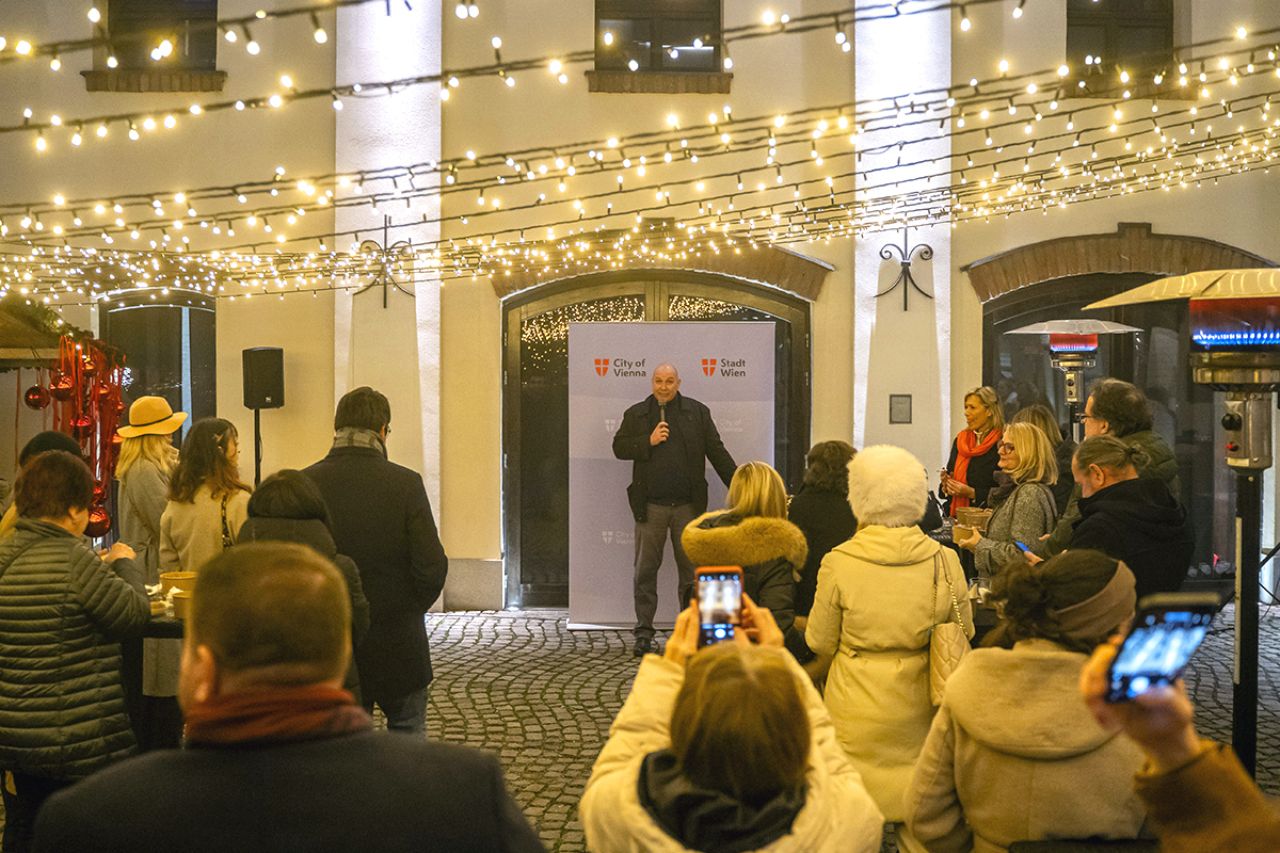 Die Gastgeber*innen erinnerten außerdem an den 200. Geburtstag von Johann Strauss Sohn, den Wien heuer gebührend feierte. Ganz im Zeichen dieses Jubiläums wurde der Abend daher von typischen Strauss-Walzern begleitet. Hervorgehoben wurde die Bedeutung der Wiener Würstelstände – ein wesentlicher Bestandteil der urbanen Identität der Stadt und UNESCO-Kulturerbe – deren Atmosphäre die Gäst*innen durch traditionelle Spezialitäten wie Glühwein und Wiener Würstel erleben konnten.